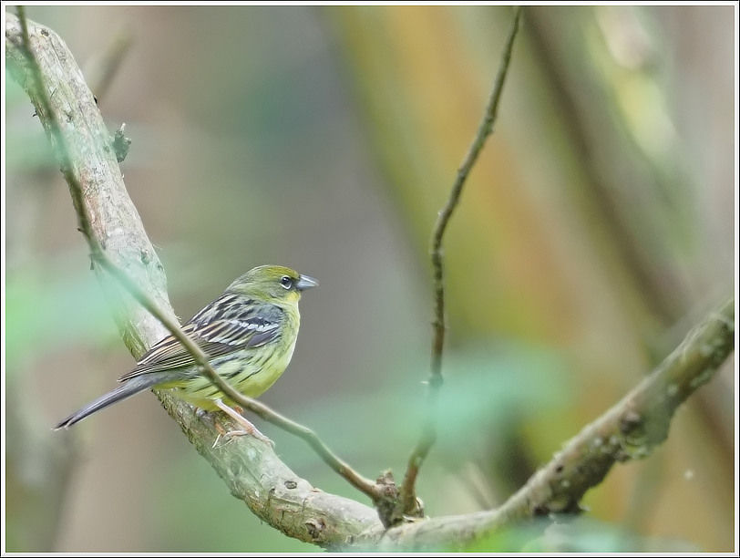 ノジコが良い声で”キンカラガミィ~ギンビョウォ~ブ(金唐紙銀屏風)”と囀っています (^^♪ キバシリと違って姿を見つけ易いノジコです (^^)v