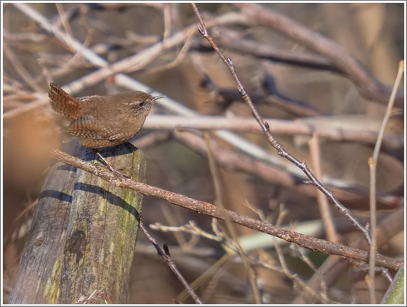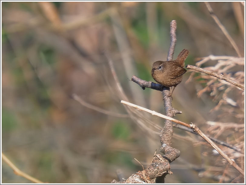 ミソサザイ冬の間は里に下りてきているミソサザイですが、散策の度にチャ、チャと聞こえていました。 今日も割と近いと思われる所でチャ、チャと… いつものように、その場にしゃがんで登場を待っていると… ミソサザイ登場~ (^^♪ 素早い動きで左右をキョロキョロして、あっという間に去って行ってしまいました。 もうちょっとゆっくりして欲しかったぁ~ (^^; E-M1 Mark II + MMF-3 + Sigma APO 50-500mm F4-6.3。